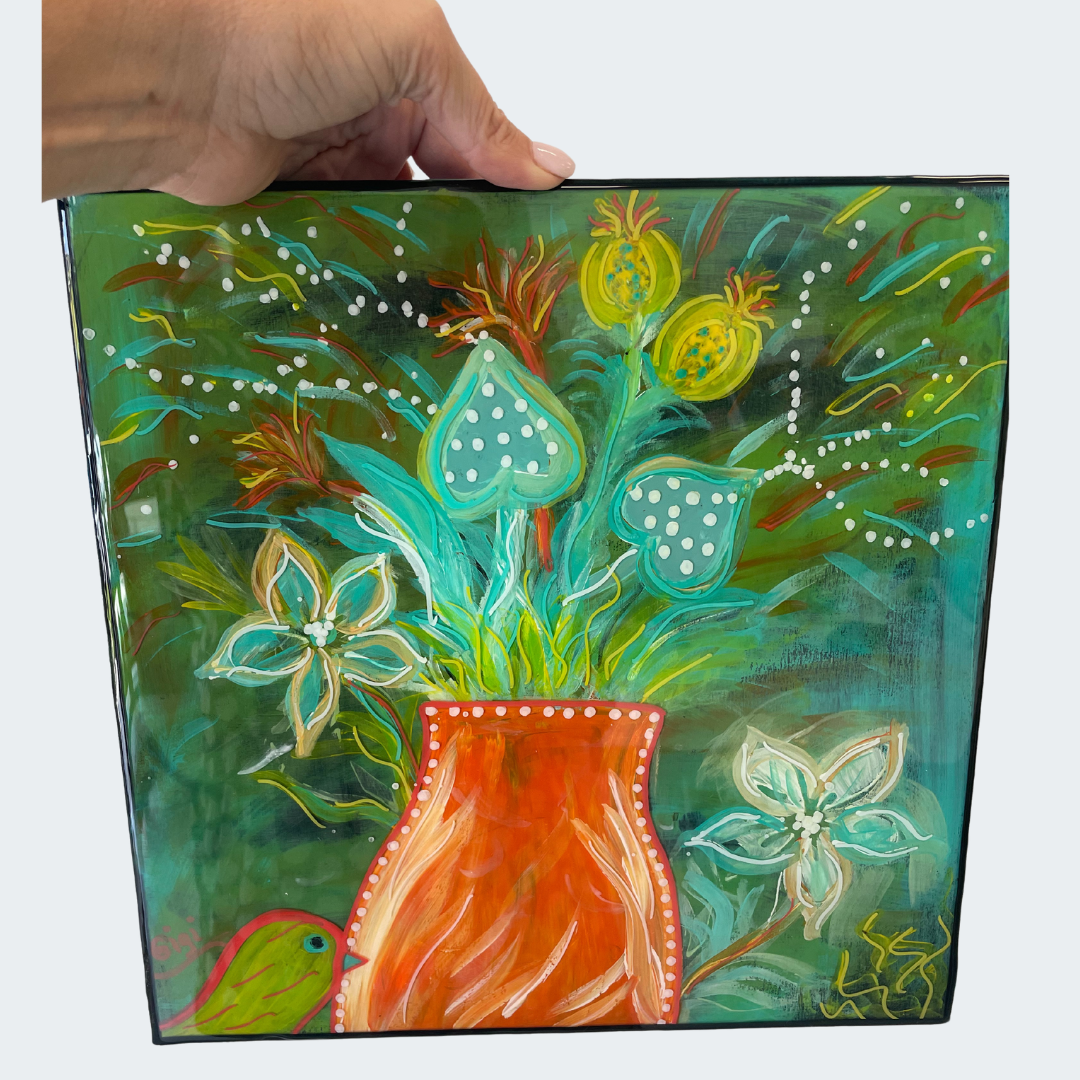 Whimsical, colorful, & full of character! Join local artist Michelle Hamilton for a fun afternoon learning to create a mixed media layered folk art piece on panel, using acrylic paints, paint pens and a few collage elements. Bring a visual muse that inspires you!