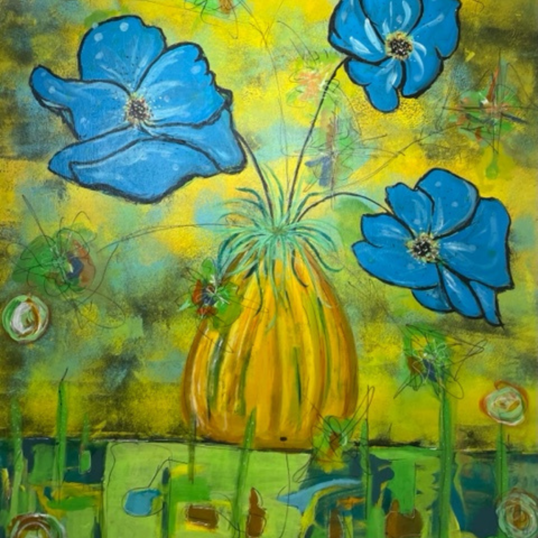 You will learn techniques in building up layers of your transferred image with acrylic paints, later adding a few collage papers. And last, but not least, learn the art of “mark-making” or adding the final details, which Michelle calls “the gingerbread” using tools such as white Gelli Roll Pens, Posca paint pens & acrylic fine-tip paint bottles for “mark-making” & detail.