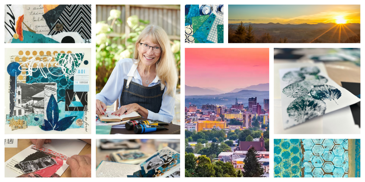 The methods I share in Collage Your Travels aren’t just about art, they’re about transformation. They’ve reshaped my life and the lives of countless students, and I’m honored to invite you to join me on this incredible journey. Together, we’ll explore Downtown Asheville as we create collages that capture the essence of your travel story, and your life.”
